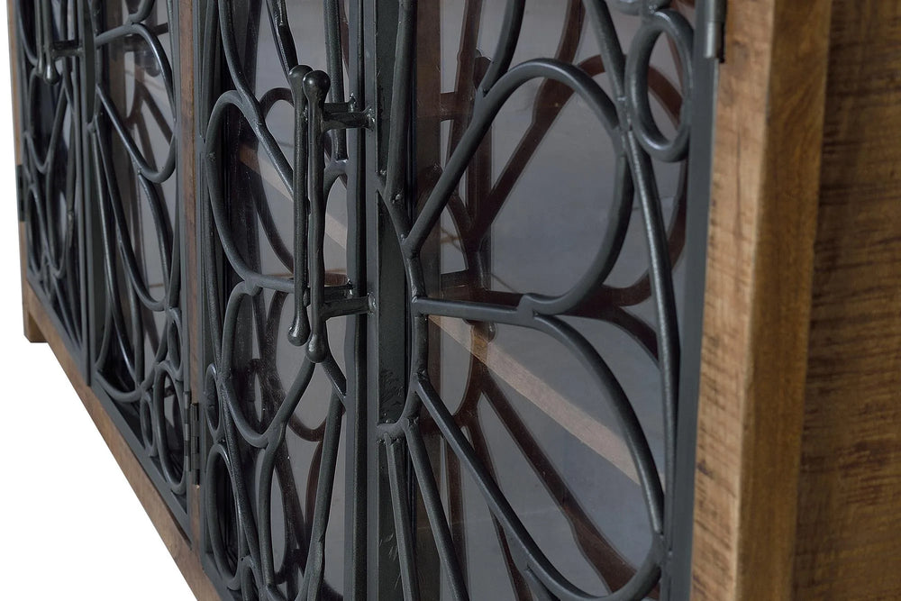 Giner and Colomer - 4-Door Mango Wood Sideboard With Metal Doors & Interior Shelves