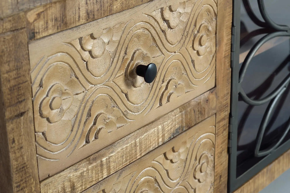 Giner and Colomer - Mango Wood TV Cabinet With 4 Drawers & 2 Metal Doors