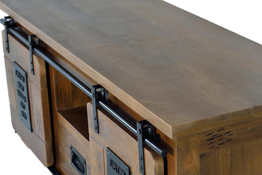 Giner and Colomer - Industrial Mango Wood TV Cabinet With 2 Sliding Doors & 1 Drawer