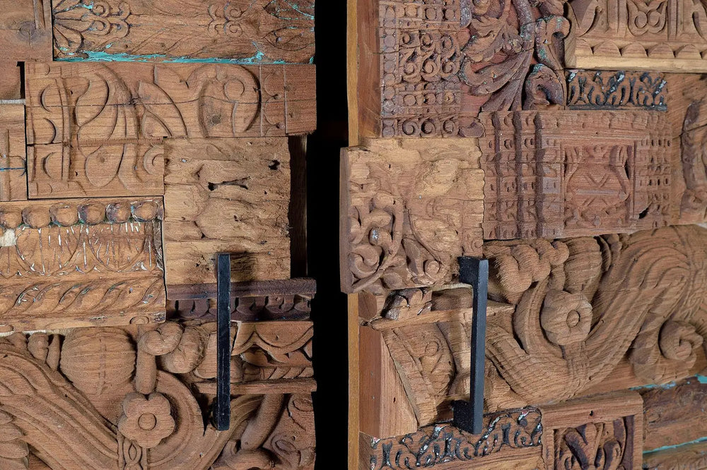 Giner and Colomer - 2-Door Mango Wood Cabinet With Recovered Wood Door Details