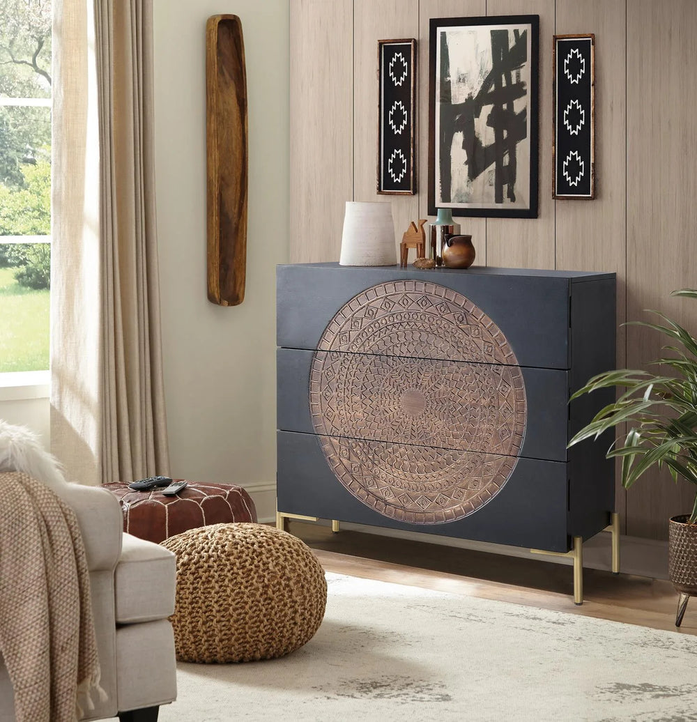 Giner and Colomer - 3-Drawer Mango Wood Chest With Metal Base