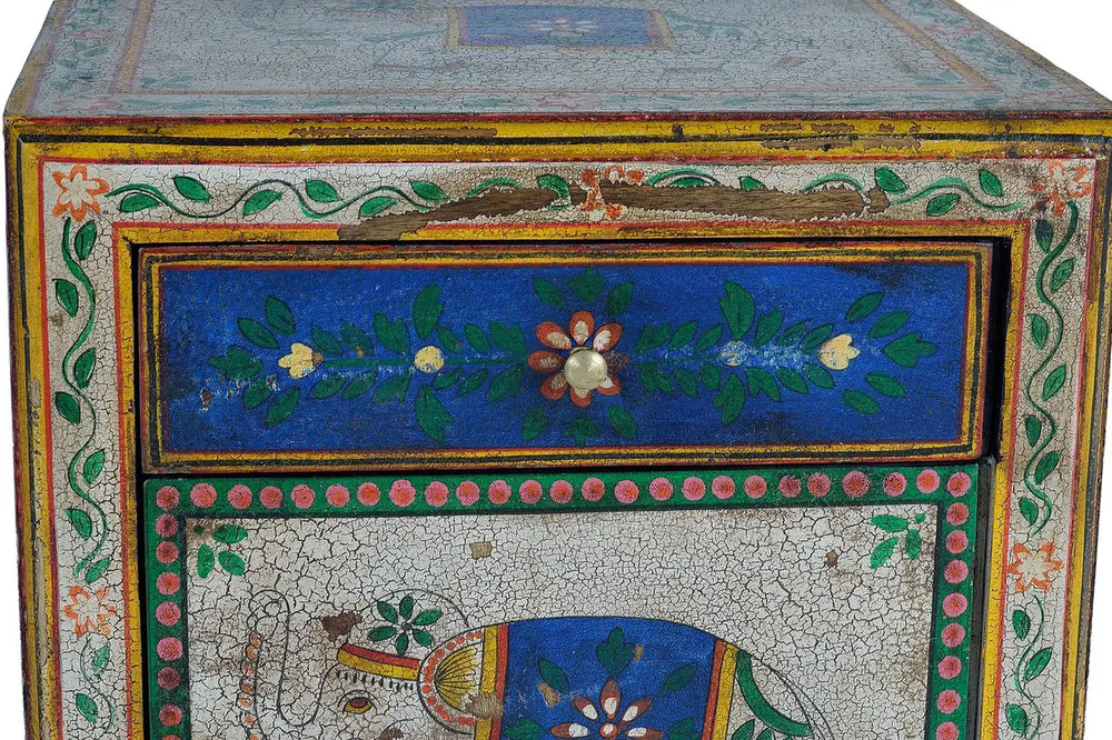 Giner and Colomer - 1-Door, 1-Drawer Mango Wood Side Table With Hand-Painted Details