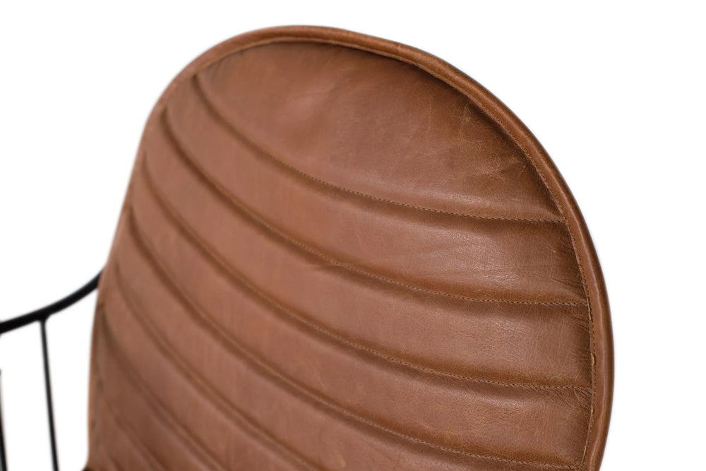Add sophistication to your space with this light brown leather chair, mounted on a robust metal frame. Non-slip pads protect your floors while offering a seat height of 48 cm, a backrest height of 47 cm, and armrest height of 16 cm. Overall dimensions are 54 cm (W) x 47 cm (D) x 92 cm (H).