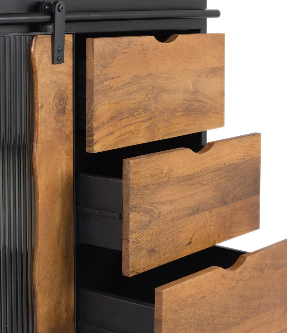 Giner and Colomer - Industrial Mango Wood & Metal Sideboard With 2 Sliding Doors & 6 Drawers