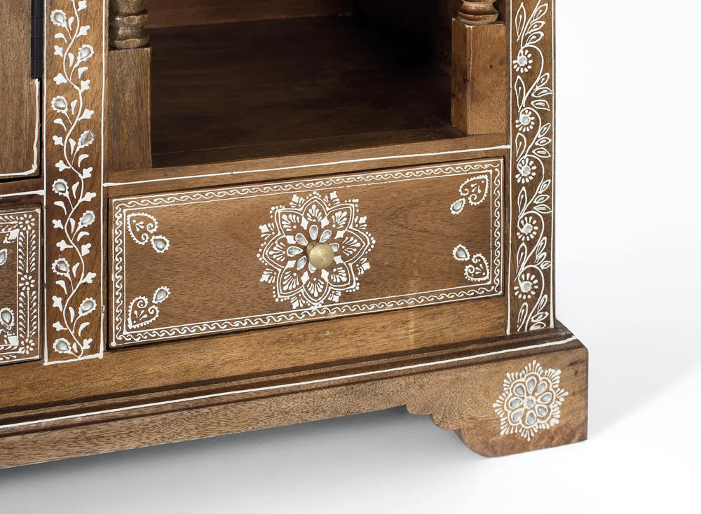 Giner and Colomer - Mango Wood Console With 1 Door, 3 Drawers & Hand-Painted Details