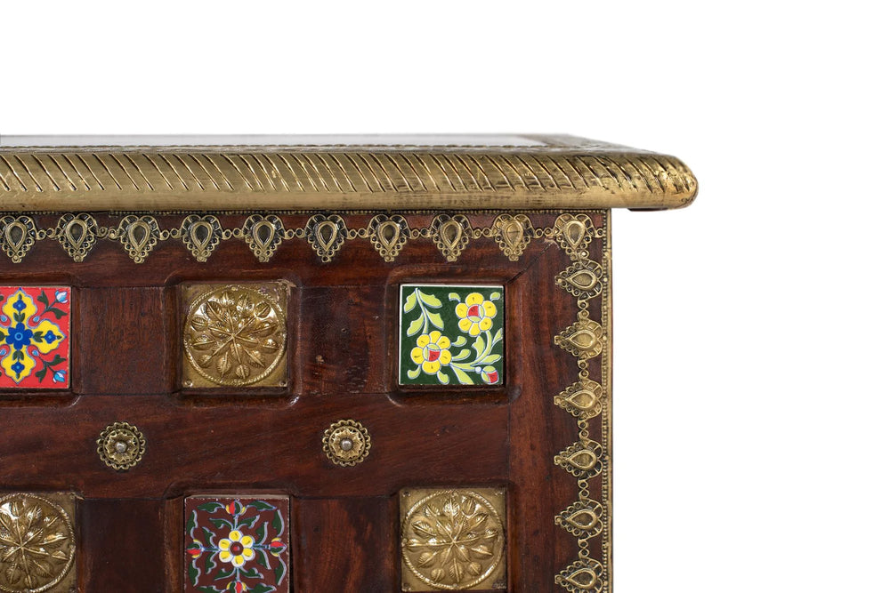Giner and Colomer - Solid Mango Wood Chest With Bronze Details & Multi-Colored Ceramic Tiles