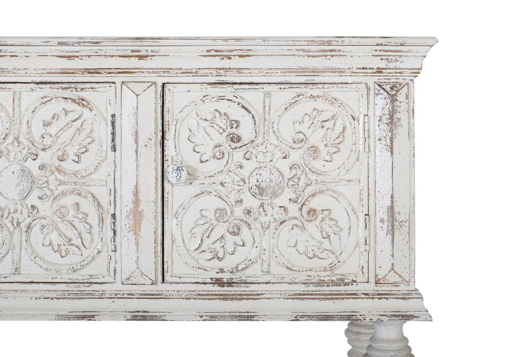 Giner and Colomer - Mango Wood Console With 3 Hand-Carved Doors & Turned Legs