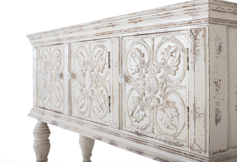 Giner and Colomer - Mango Wood Console With 3 Hand-Carved Doors & Turned Legs is backordered and will ship as soon as it is back in stock.