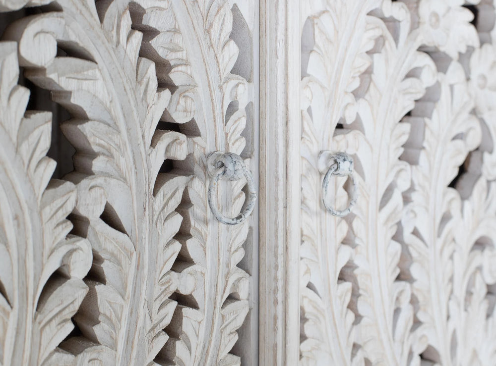 Giner and Colomer - Antique White Mango Wood Wardrobe With 2 Hand-Carved Doors
