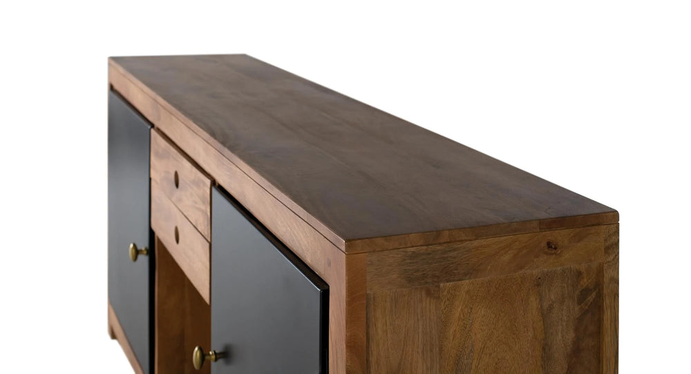 Giner and Colomer - Mango Wood Sideboard With Interior Lighting, 2 Metal Doors & 2 Drawers