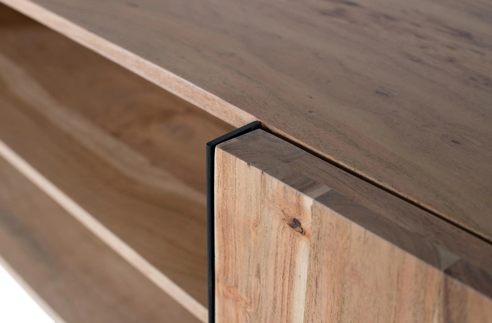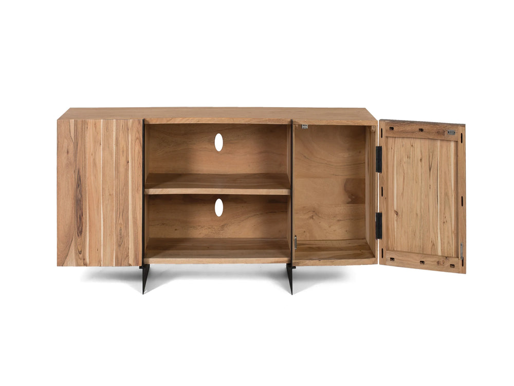 Giner and Colomer - 2-Door Acacia Wood TV Cabinet With Metal Base (Natural)