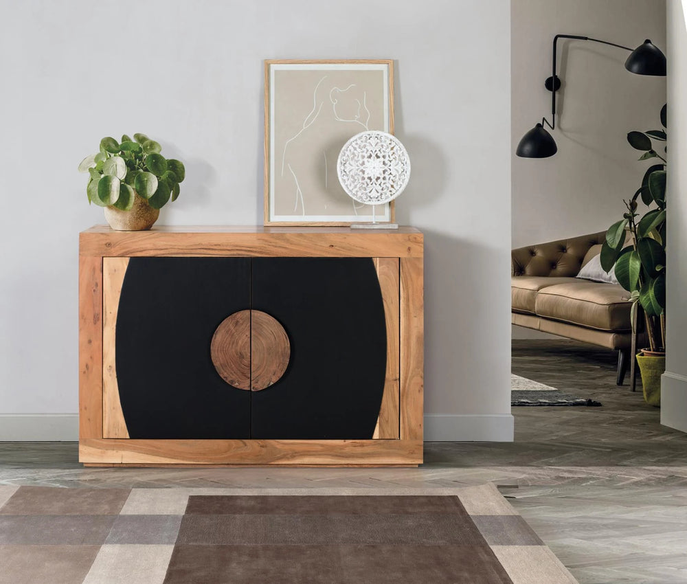 Giner and Colomer - 2-Door Acacia Wood Sideboard With Carved Log Handles