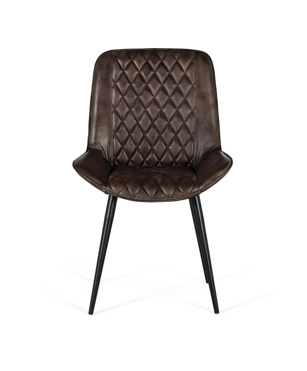 Giner and Colomer - Ash Grey Leather Chair With Diamond Stitching & Iron Cone Legs