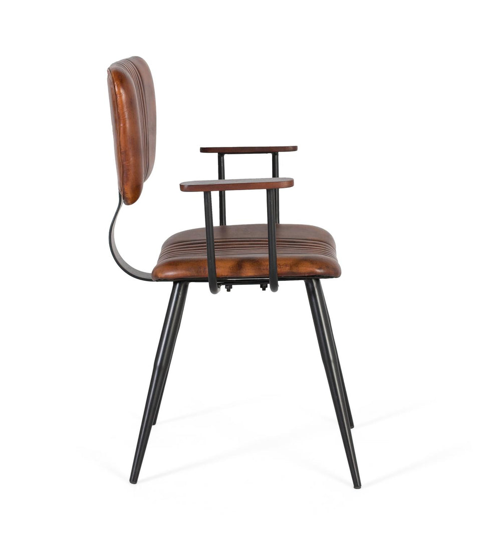 Giner and Colomer - Set Of 2 Brown Cowhide Chairs With Black Iron Frame & Arms