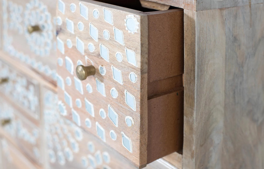Giner and Colomer - 10-Drawer Mango Wood Chest With White Hand-Painted Fronts
