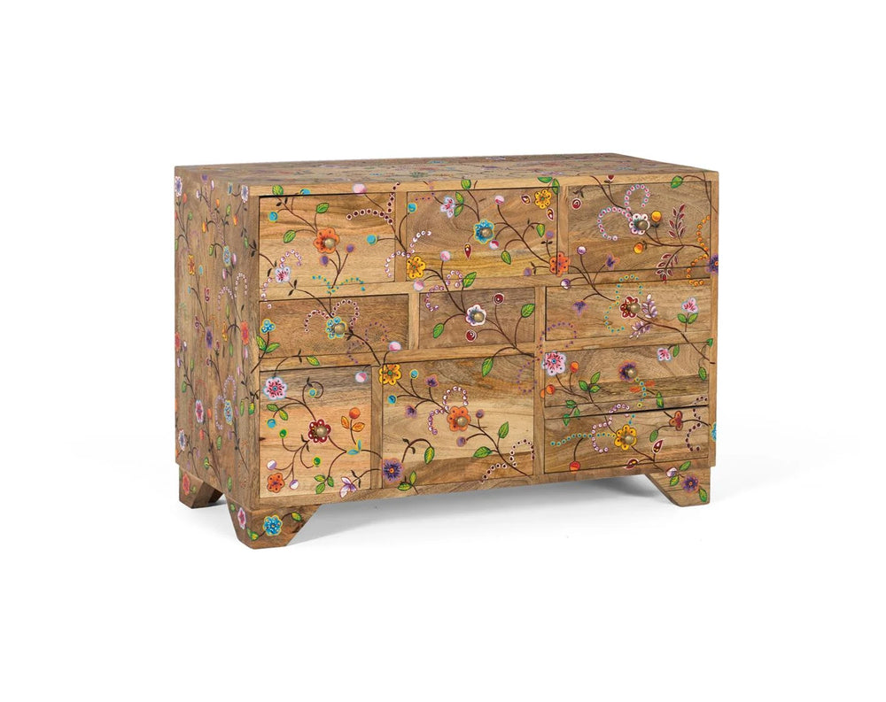 Giner and Colomer - Mango Wood Chest Of Drawers With 10 Hand-Painted Floral Drawers