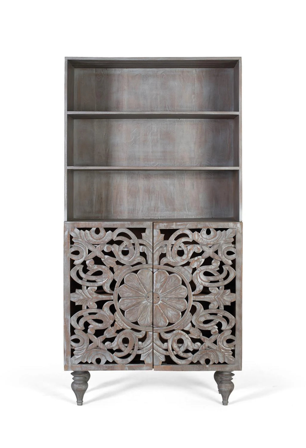 Giner and Colomer - Hand-Carved Mango Wood Bookcase (2 Doors, Grey Pickled)