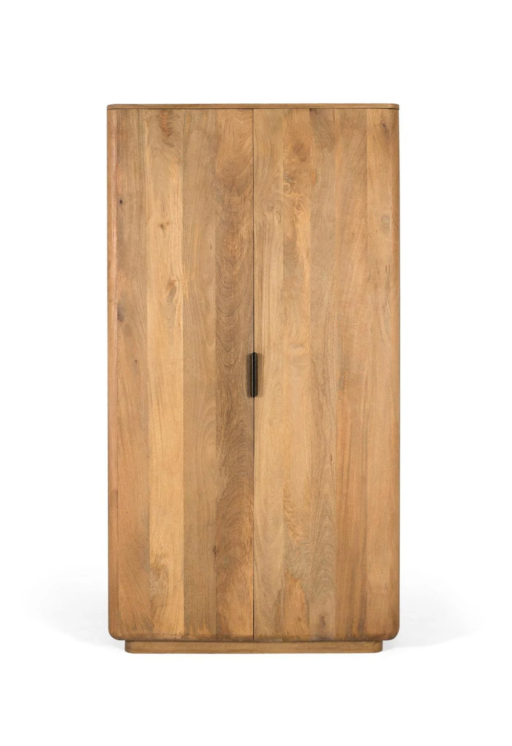Giner and Colomer - Mango Wood Wardrobe (2 Doors, Natural Finish, Shelves & Rail)