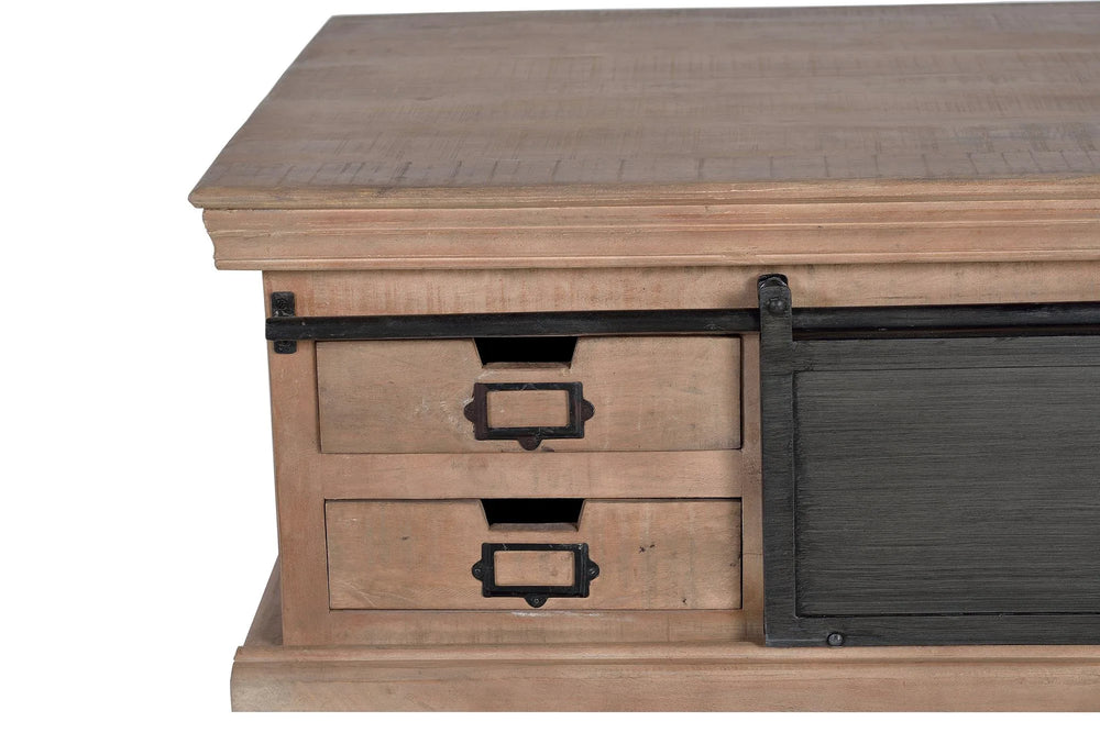 Giner and Colomer - Mango Wood & Metal Coffee Table (4 Drawers, 2 Sliding Doors) is backordered and will ship as soon as it is back in stock.