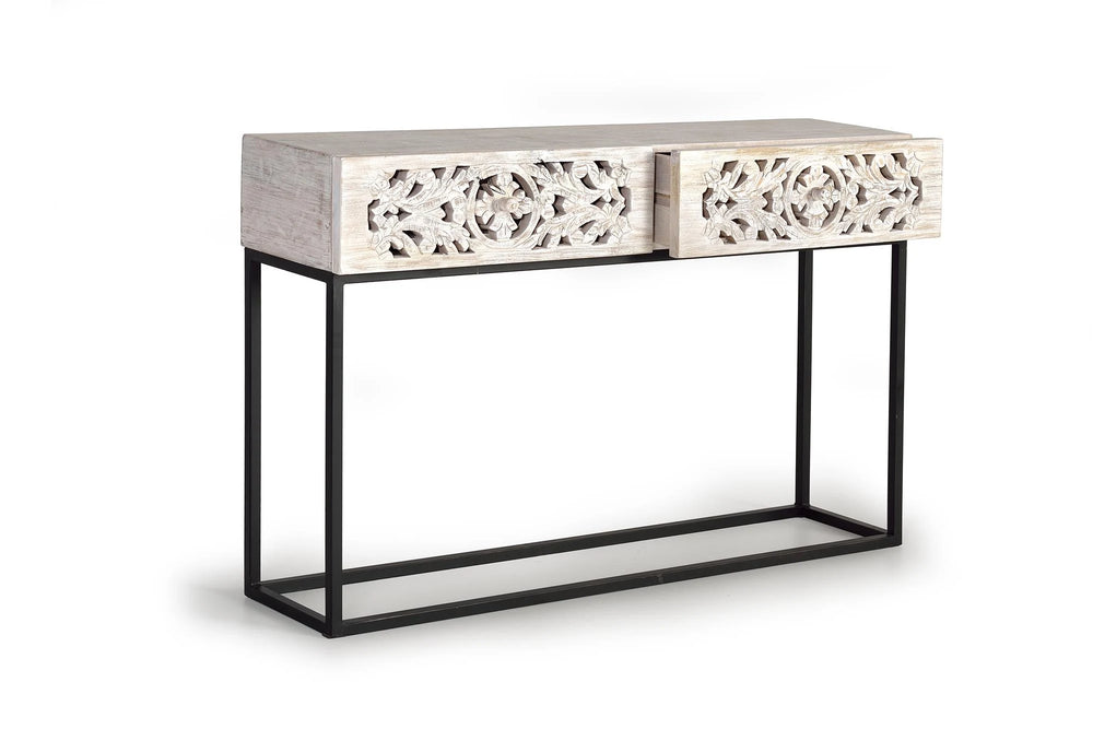 Giner and Colomer - Console With 2 Hand-Carved Drawers (Mango Wood & Metal Base)