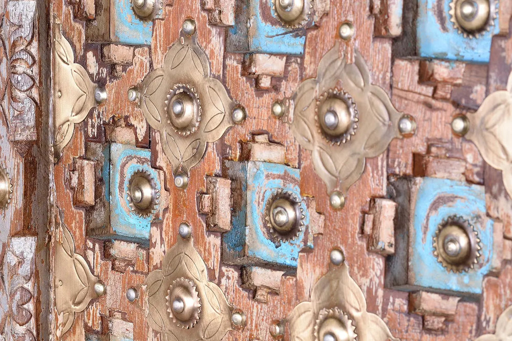Combine artistry and organization in this cabinet, crafted from mango wood. Bronze door details lend a refined finish, while built-in shelves ensure ample room for essentials.
