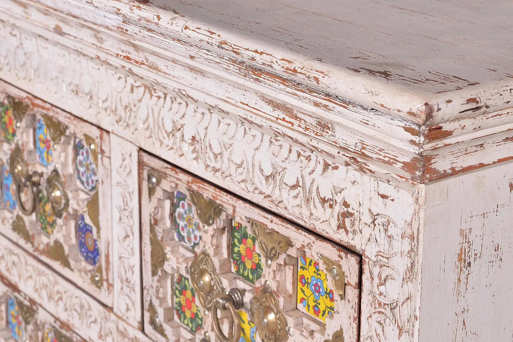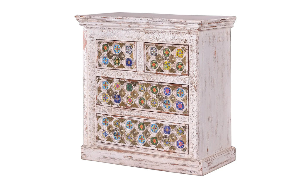 Giner and Colomer - 4-Drawer Mango Wood Chest Of Drawers (Ceramic & Bronze)