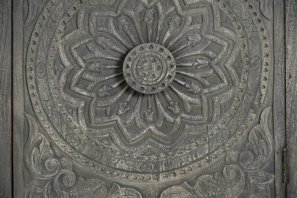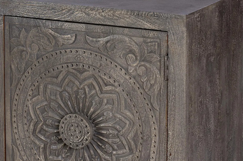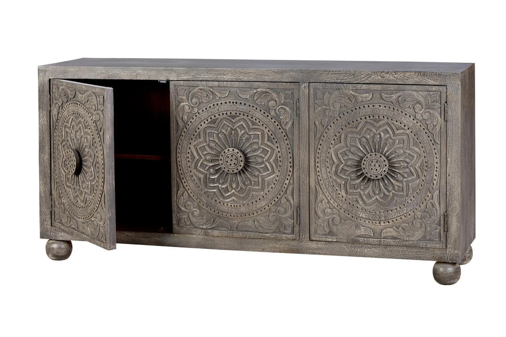 Giner and Colomer - 3-Door Mango Wood Sideboard With Handmade Door Details is backordered and will ship as soon as it is back in stock.
