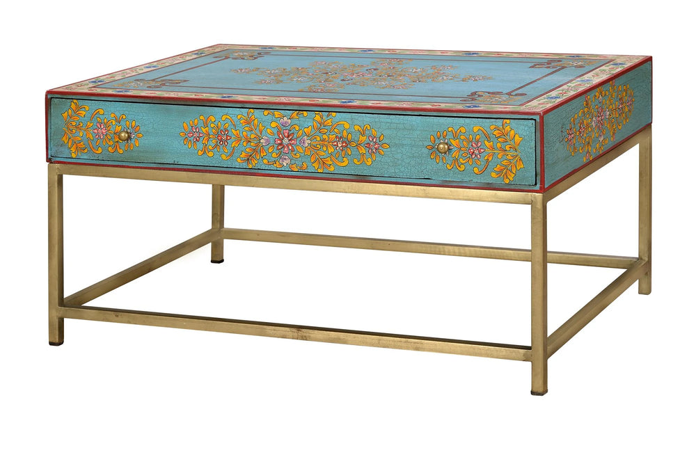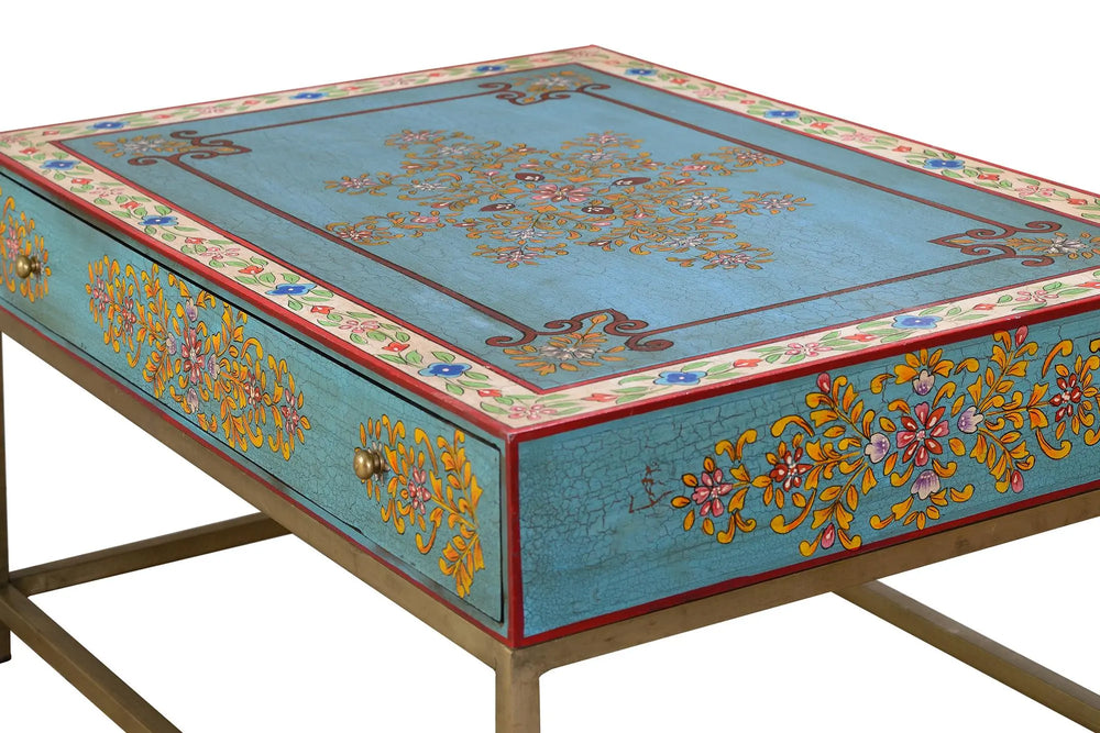 Giner and Colomer - 1-Drawer Coffee Table With Metal Base & Hand-Painted Mango Wood Top