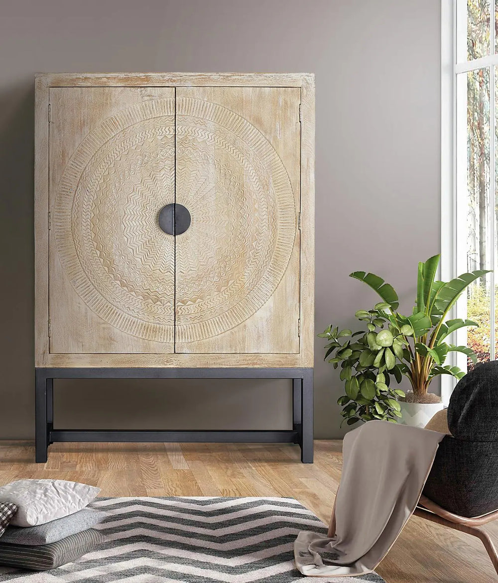 Giner and Colomer - Mango Wood & Metal Base Cabinet (Shelves at 38 cm)