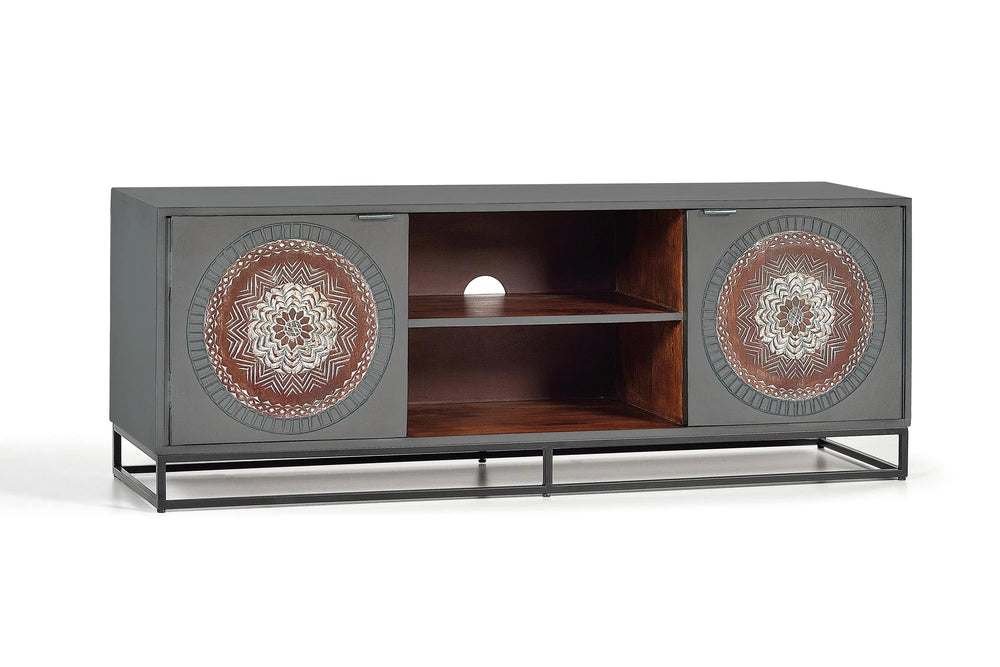 Giner and Colomer - 2-Door Mango Wood TV Cabinet With Metal Base