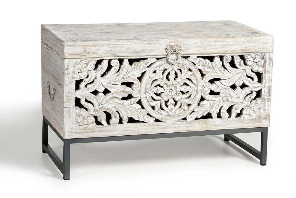 Giner and Colomer - Mango Wood Chest & Metal Base (Top Opening, Large Capacity)