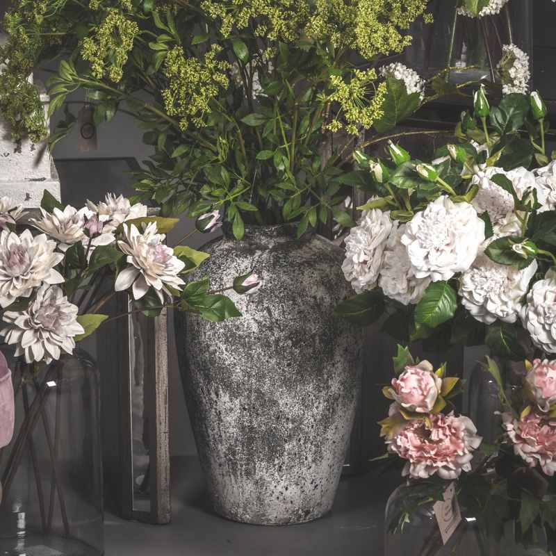 Crafted with meticulous attention to detail, this statuesque ceramic vase showcases an authentic weathered stone finish that adds depth and character to any space. The generous proportions and cylindrical silhouette create an imposing presence that draws the eye while maintaining understated refinement. The neutral palette and rustic texture make it an ideal vessel for dramatic floral arrangements, particularly when paired with our Green Peony stems or Variegated Eucalyptus sprays for a contemporary botanical display. For those seeking to create a cohesive collection, this piece harmonizes beautifully with the Regola Matt White Ceramic Vase, Darcy Antique White Vase, and Tiber Stone Ceramic Vase from our curated range. The artisanal stone effect treatment ensures each piece has subtle variations in tone and texture, making every vase uniquely appealing. Perfect for both minimalist modern interiors and traditional settings, this vase offers retailers a high-demand product that appeals to discerning customers who appreciate authentic materials and artisanal quality. The substantial size makes it equally suited for grand entranceways or as a statement piece in more intimate settings, while its versatility allows for both dried and artificial arrangements.