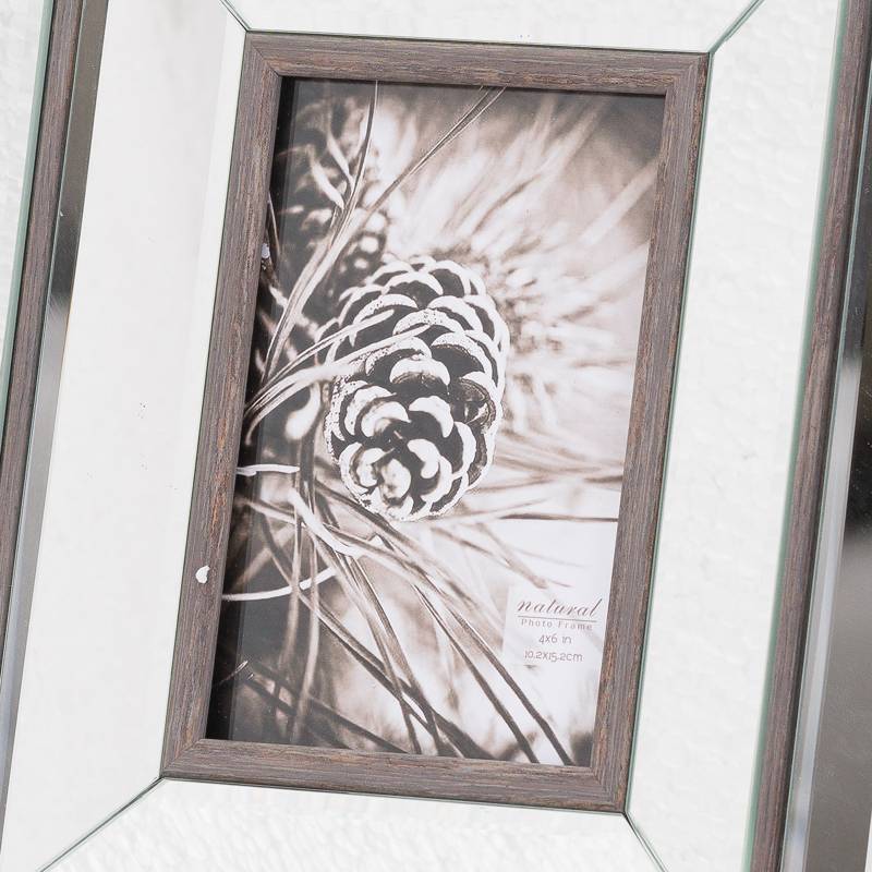 Merging the raw beauty of natural wood with the refined allure of beveled mirror surfaces, this distinctive frame creates a mesmerizing interplay of light and texture. The frame exemplifies the perfect balance between rustic warmth and modern luxury, where each material enhances the other's inherent qualities. The mirrored elements catch and reflect light from multiple angles, creating an engaging visual display that draws attention to your chosen photograph or artwork. For retail spaces, this piece offers exceptional merchandising potential as part of a coordinated collection, pairing beautifully with our Luxe Collection LED tealights for an atmospheric display, or alongside the Variegated Eucalyptus stems for an organic contrast. The Black Antique Gold Beaded frames from our collection provide an excellent complementary option for customers seeking to create a cohesive gallery wall display. Available in a range of sizes, this frame series allows retailers to offer their customers flexibility in creating personalized photo displays while maintaining a consistent design aesthetic throughout their space. The combination of materials appeals to both traditional and contemporary design sensibilities, making it a reliable stock choice that satisfies diverse customer preferences.