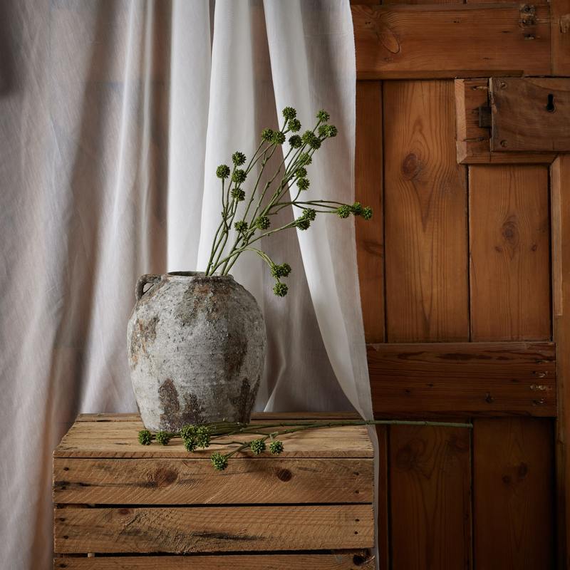 Bring the raw beauty of field-gathered botanicals to your floral arrangements with this meticulously crafted Green Craspedia Stem. Each stem features distinctive spherical blooms that inject modern architectural interest into any display. The muted sage-green hue and organic form make it an ideal choice for contemporary and classic settings alike. This botanical accent pairs exceptionally well with the Italian White Bellflower for textural contrast, while the Seeded Eucalyptus Spray and Silver Wattle Leaf create depth and movement in mixed arrangements. For a dramatic meadow-inspired look, combine with Purple Wildflower Small Spray and Tall Green Hops Stem. The structured form of the Craspedia adds visual weight and geometric appeal to looser, more fluid arrangements incorporating the Gunnii Eucalyptus Spray or Asparagus Fern Bunch. Perfect for retail florists looking to offer unique textural elements, this stem appeals to customers seeking both traditional and avant-garde design possibilities. The durable construction ensures longevity in both commercial and residential settings, making it a reliable choice for your inventory.