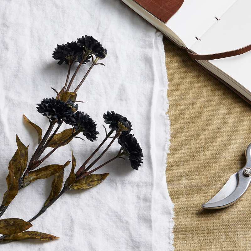 Dark drama meets floral finesse in this deep noir chrysanthemum, featuring richly textured petals that cast mysterious shadows and create depth in any arrangement. The inky black hue makes an unforgettable statement in modern and gothic-inspired spaces, while its substantial bloom size commands attention as a focal point. Perfect for creating moody seasonal displays, this artificial flower pairs beautifully with our tall black poppy stems and blackened grass sprays for a cohesive monochromatic theme. For a dramatic contrast, combine with the pale pink tea rose or cream cosmos spray to achieve a stunning light-and-dark interplay. The silver wattle leaf and ornamental burgundy leaf accessories provide the ideal foliage backdrop, emphasizing the chrysanthemum's intense coloring and adding textural variety to the overall composition. Ideal for boutique florists, high-end retail displays, and interior designers seeking to introduce unexpected elements into their botanical arrangements.