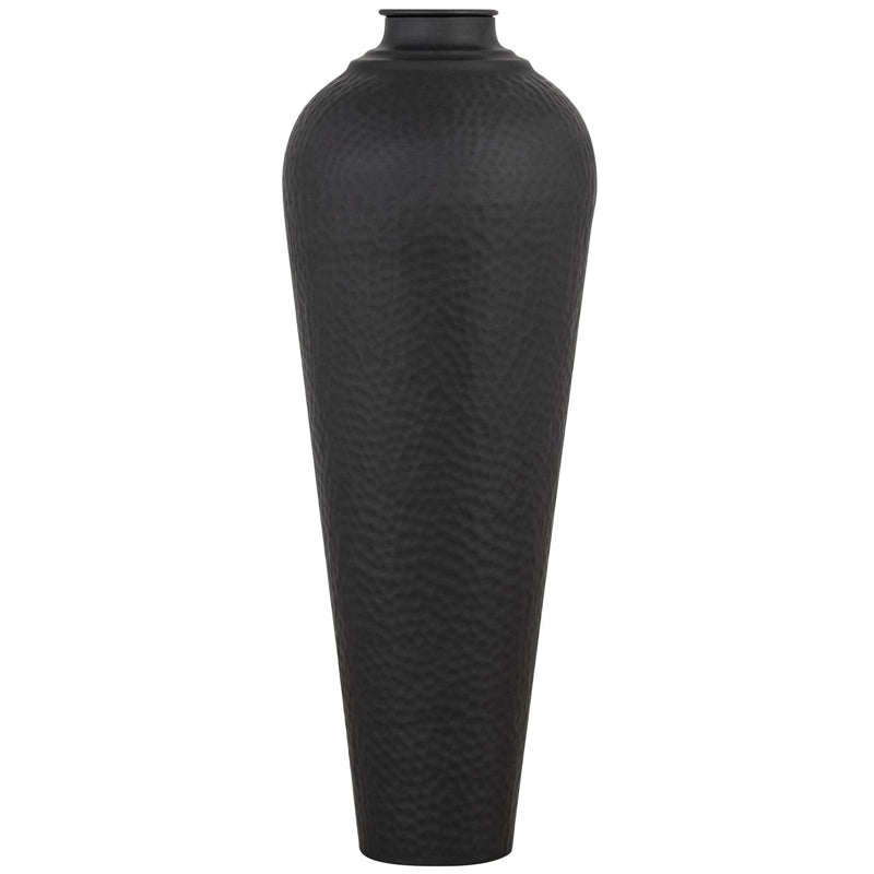 This is the Matt Black Medium Hammered Vase Without Lid. This handcrafted, hammered steel vase looks great styled with twisted hazel branches and can be displayed floor standing. A striking, contemporary piece with instant impact.