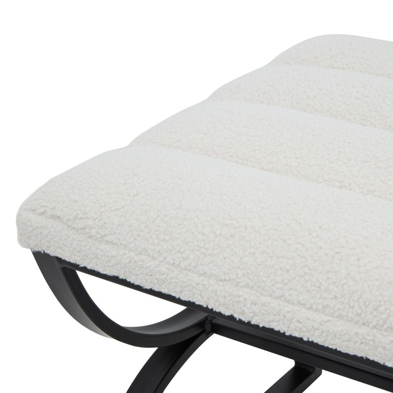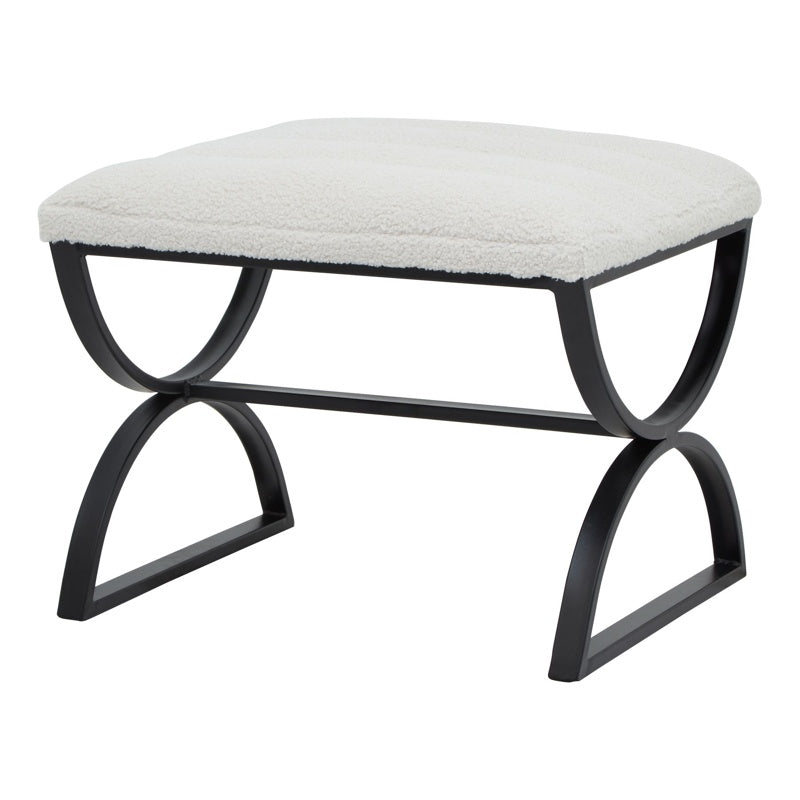 Luxuriously textured and impeccably designed, this boucle ribbed footstool marries contemporary elegance with practical comfort. The plush cream upholstery features a sophisticated ribbed pattern that adds visual interest and tactile appeal, while the striking black metal frame showcases graceful curved supports that create an architectural statement. Perfect for modern, Scandinavian, or transitional interiors, this versatile piece works beautifully as an ottoman, extra seating, or stylish accent. Pair it with the Boucle Ribbed Ark Chair for a cohesive look, or use it to add a soft contrast to industrial or mid-century modern spaces. The neutral palette allows for endless styling possibilities, from minimalist settings to layered, texture-rich rooms. The footstool's generous proportions and sturdy construction make it ideal for both residential and commercial spaces, promising to be a sought-after piece for design-conscious customers seeking both style and functionality. For maximum design impact, consider pairing with black metal frame accent chairs, cream or neutral-toned sofas, contemporary glass coffee tables, textured throw pillows and blankets, and geometric area rugs. This adaptable piece seamlessly bridges the gap between comfort and sophisticated design, making it an essential addition to any carefully curated furniture collection.