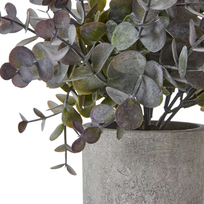 Elevate your customers' spaces with our exquisite Small Eucalyptus Cinerea Plant in Grey Pot. This lifelike faux botanical brings the timeless beauty of Australian flora to any interior, without the need for maintenance. Featuring the distinctive silvery-blue foliage of Eucalyptus cinerea, also known as Argyle Apple or Mealy Stringybark, this artificial plant captures the essence of nature's elegance. The delicate, round leaves cascade gracefully from multiple stems, creating a lush, full appearance that mimics the real thing perfectly. Nestled in a stylish grey pot with a textured, concrete-like finish, this piece effortlessly blends modern aesthetics with organic charm. The neutral vessel complements a wide range of interior styles, from Scandinavian minimalism to rustic farmhouse chic. Its compact size is eucalyptus ideal for retail displays, coffee tables, shelves, or as part of larger botanical installations. Pair with other faux succulents or native Australian plants for a curated, on-trend look that will appeal to discerning customers.