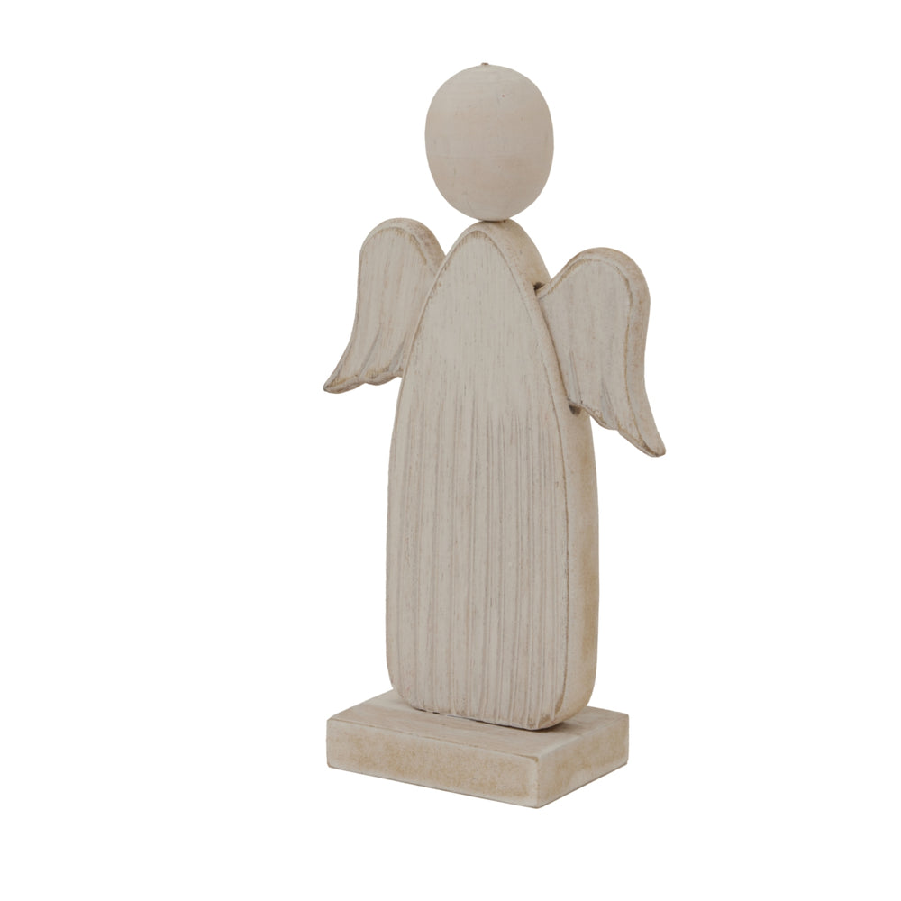 This ethereal decorative piece radiates serenity and grace with its distinctive whitewashed finish that gives it an authentically aged patina. The rustic treatment enhances the delicate details of the angel's flowing robes and peaceful countenance, creating an atmosphere of tranquillity and spiritual calm in any setting. The carefully considered proportions and gentle posture of the figure make it an ideal focal point for seasonal displays or year-round decoration. The weathered white finish allows this piece to coordinate seamlessly with both contemporary and traditional dcor schemes, while its modest scale makes it perfect for mantlepiece arrangements, console tables, or retail display units. For maximum visual impact, consider pairing this angel with complementary accessories such as antiqued metallic candlesticks, weathered ceramic vases, or textured seasonal garlands. The neutral palette works particularly well when grouped with mercury glass ornaments, pearl-finished baubles, or vintage-style beaded decorations. This versatile piece appeals to customers seeking to create mindful spaces with meaningful decorative elements that transcend seasonal boundaries. The durable construction ensures longevity in both commercial and domestic settings, making it an excellent choice for retailers looking to expand their range of decorative objects that resonate with consumers' increasing desire for items that convey both spiritual significance and aesthetic refinement.