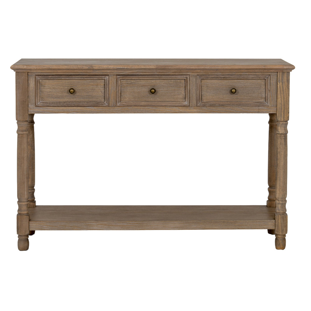 Delphine Collection 3 Drawer Console With Shelf is backordered and will ship as soon as it is back in stock.
