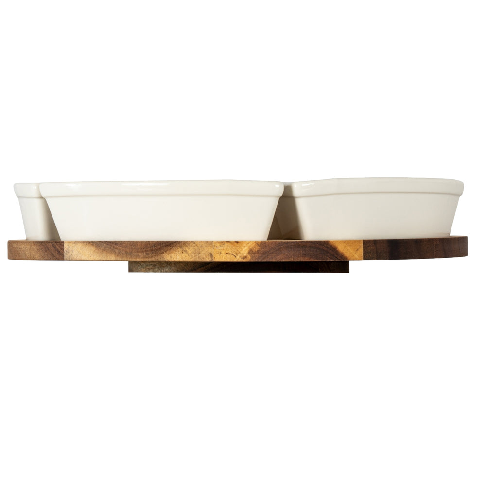 Acacia Lazy Susan including Ceramic Serving Bowls