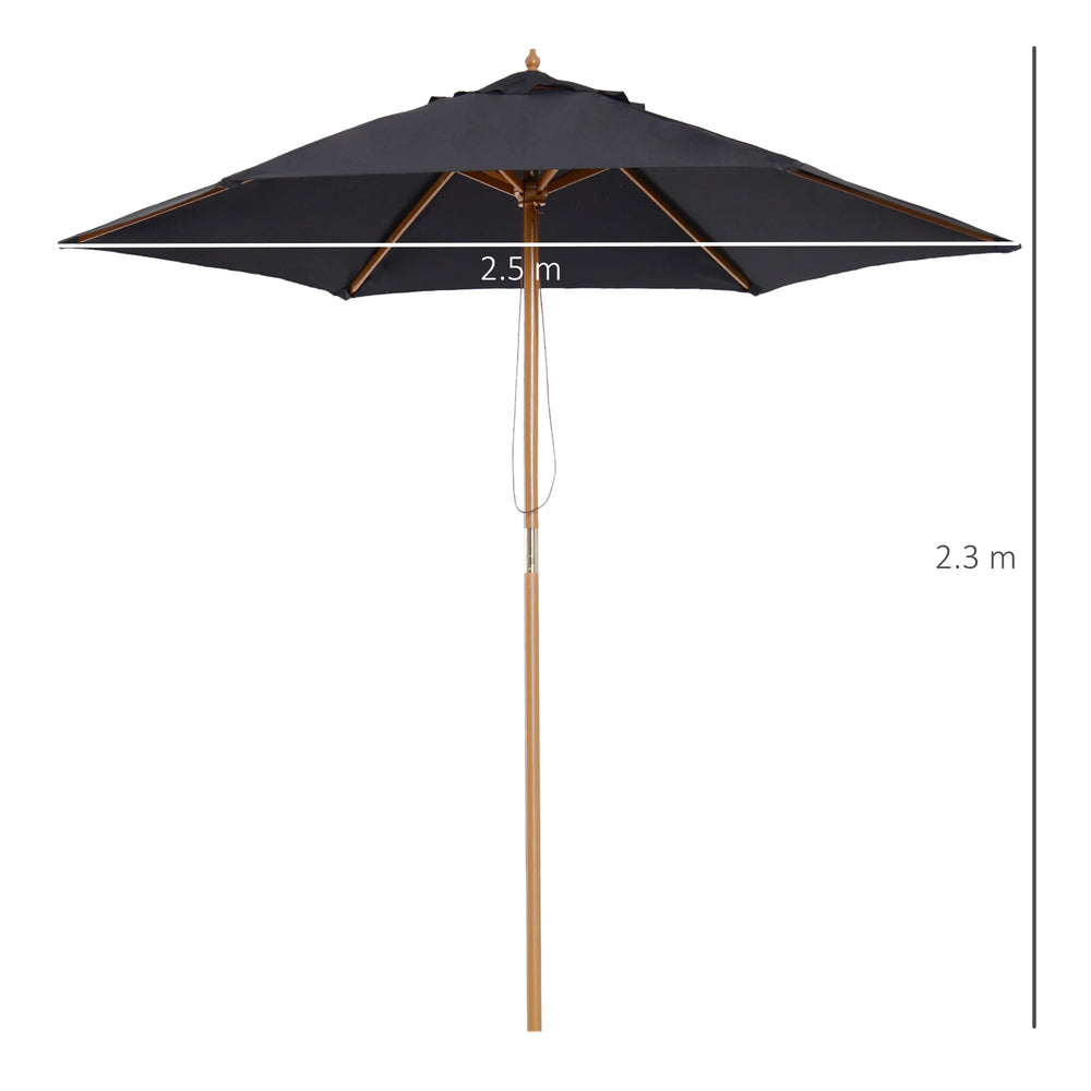 Outsunny 2.5m Wood Garden Parasol Sun Shade Patio Outdoor Wooden Umbrella Canopy Black