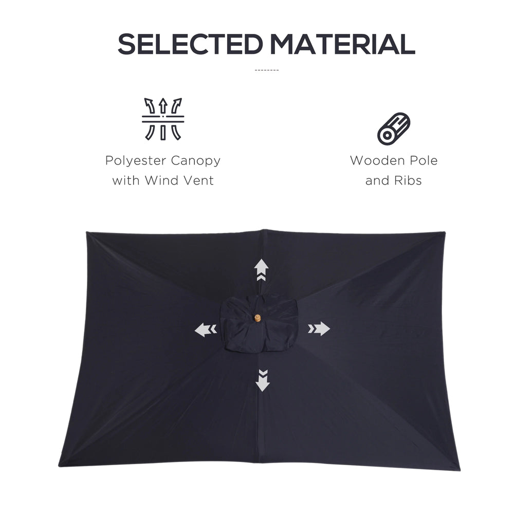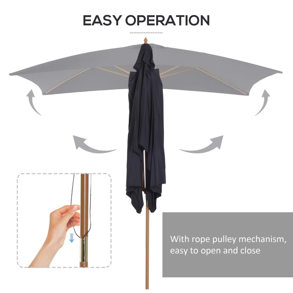 Outsunny 2 x 3m Wooden Garden Parasol Umbrella Outdoor Sun Shade Canopy, Black