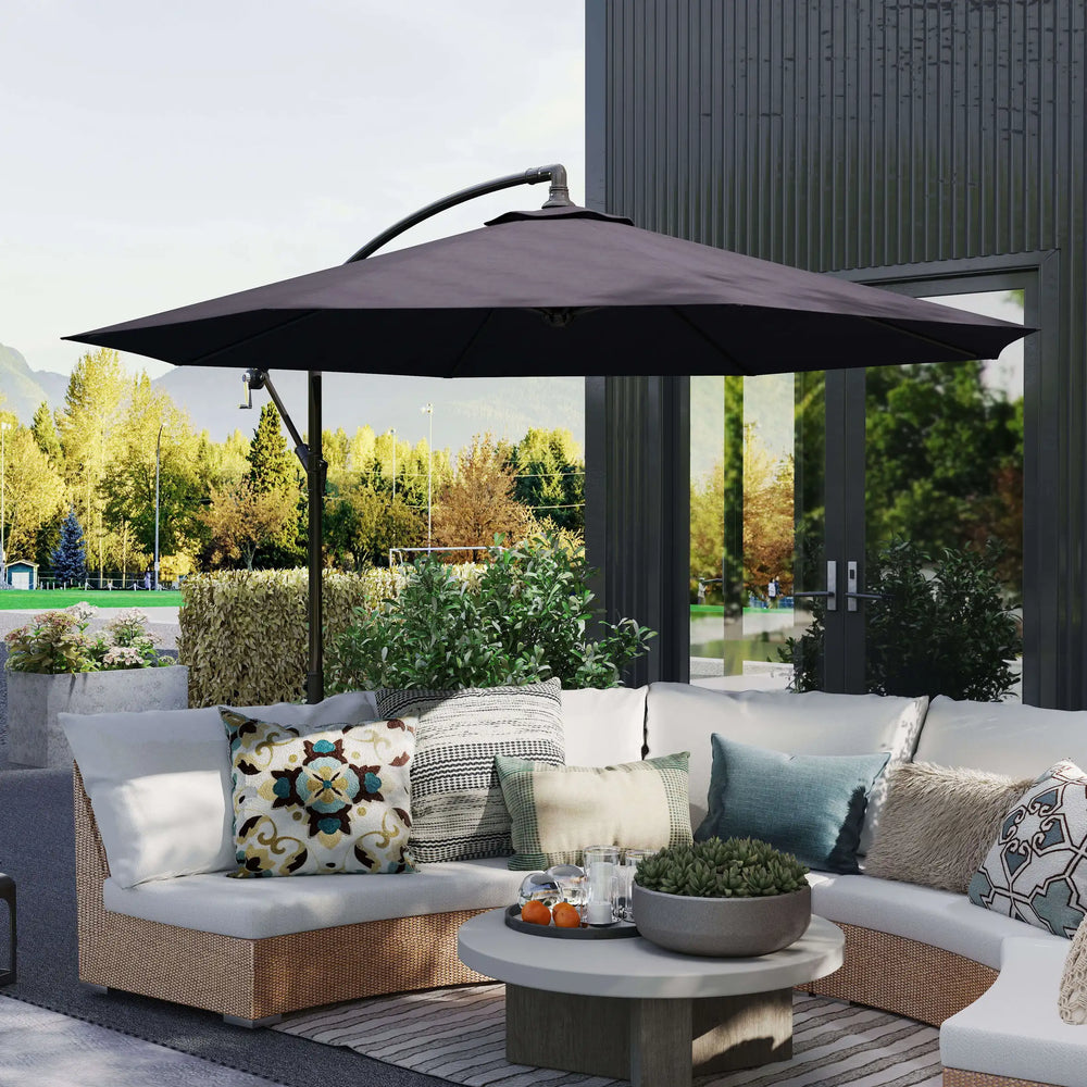 - LARGE SHADE AREA: Diameter 3m hanging garden umbrella parasol hangs over your dining set or garden set
