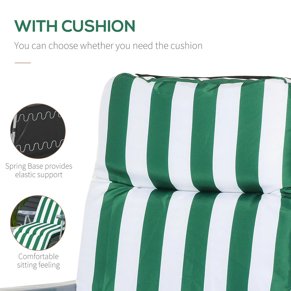 Outsunny 2 Pieces Outdoor Sun Lounger Set with Cushions, Patio Folding 5-Level Adjustable Backrest Recliner Chairs Set of 2 with High Backrest and Armrests, Green & White