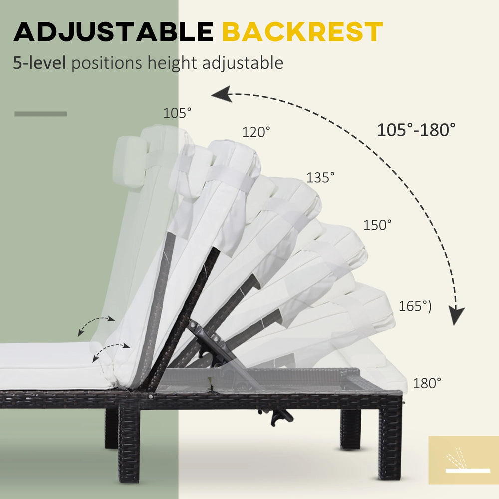 Outsunny Rattan Sun Lounger, 5-Level Adjustable Garden Lounger Recliner with Cushion and Headrest, Outdoor Reclining Sunbed, Steel Frame Garden Chair for Patio, Beach, Terrace, Cream White