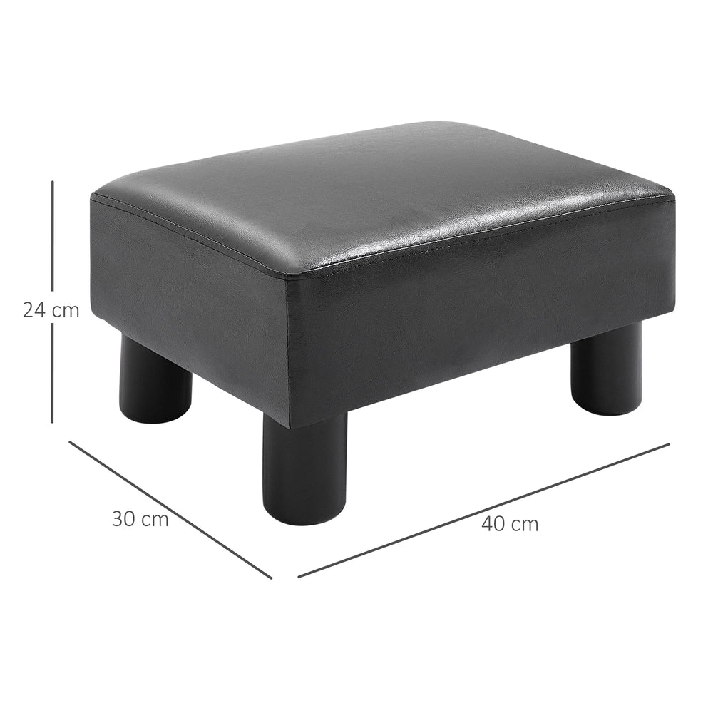 HOMCOM Faux Leather Footstool, Small Foot Rest, Rectangle Sofa Stool for Bedroom Living Room, Black