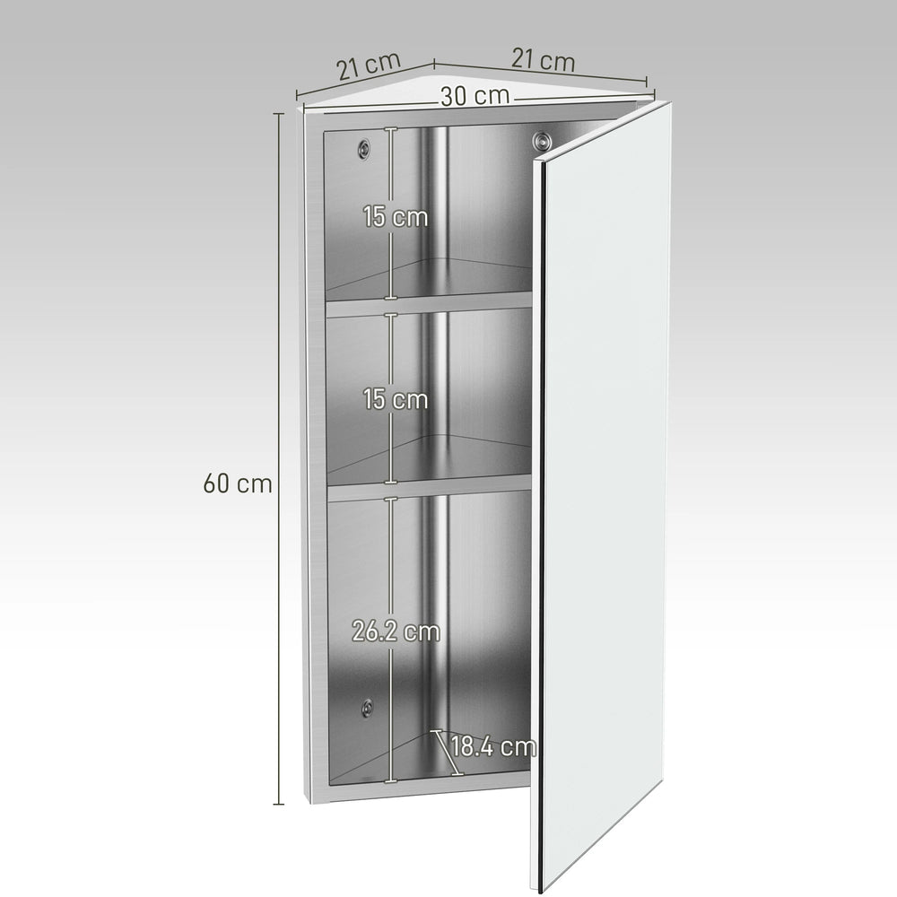 HOMCOM Stainless Steel Wall mounted Bathroom Corner Mirror Storage Cabinet Single Door 300mm (W)