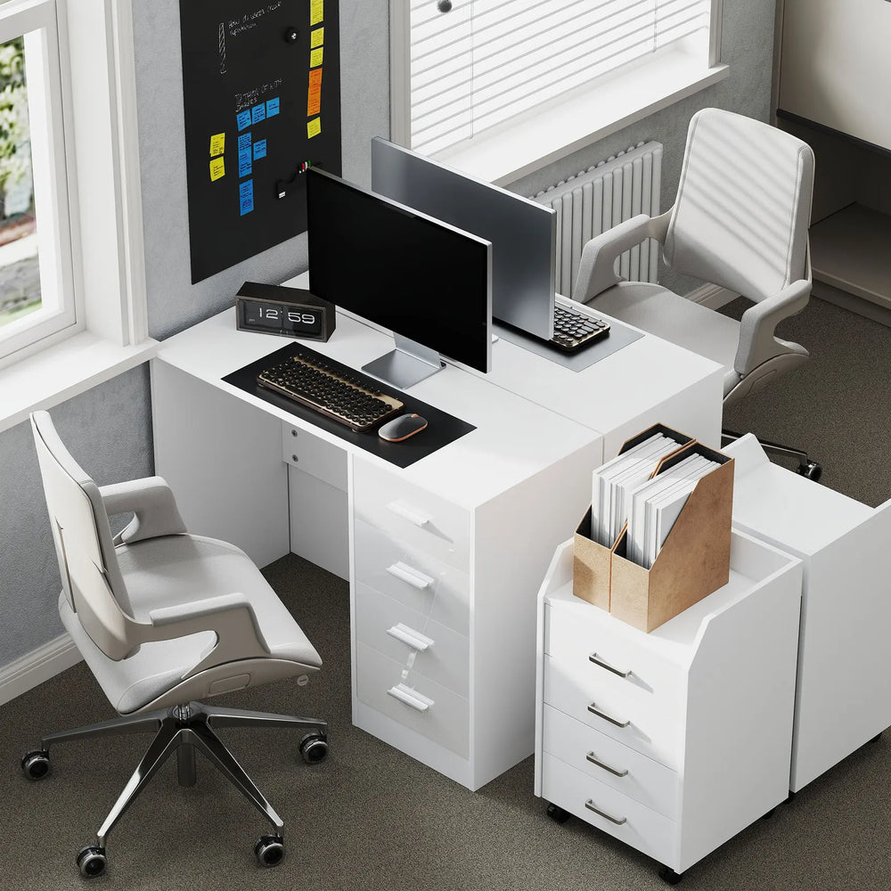 Enhance your home office efficiency with HOMCOM's modern study desk, designed for those seeking both style and functionality. This sleek, high-gloss desk transforms any space into a productive haven, offering ample desktop area and four spacious drawers for organizing books, important documents, and cherished photos, its sturdy construction ensures durability. Perfect for creating a streamlined, organized environment, this desk is an ideal solution for modern home office needs.