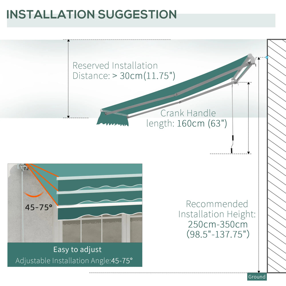 Outsunny 3x2.5 m Sun Shade Canopy Garden Patio Manual Retractable Awning Canopy-Dark Green